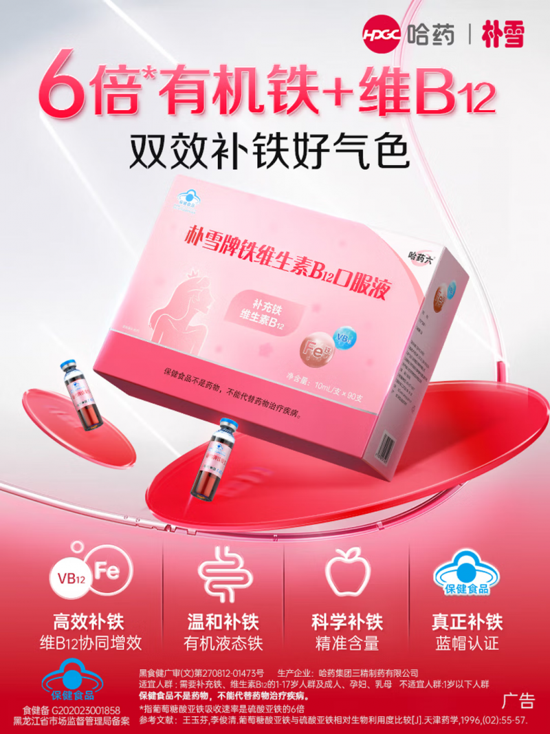 作为哈药三精旗下产品,朴雪牌铁维生素B12口服液专注于日常营养补充,配方干净可靠,不替代药物。它特别适合:长期熬夜、加班多、饮食不规律的职场女性,帮助改善日常状态,让精力、气色和专注力逐步恢复。规律使用,每天补充基础营养,让身体慢慢稳住状态,让精神更集中、气色更自然。
