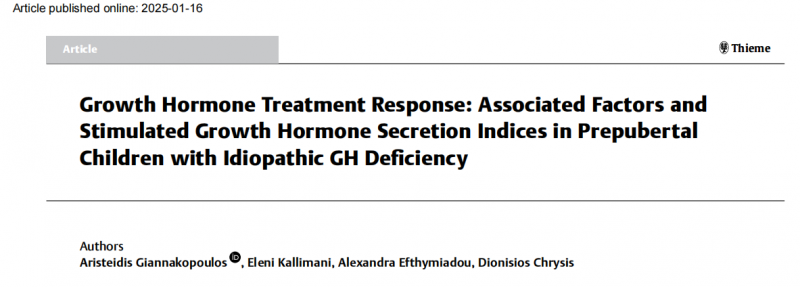 Giannakopoulos A, Kallimani E, Efthymiadou A, et al. Growth Hormone Treatment Response: Associated Factors and Stimulated Growth Hormone Secretion Indices in Prepubertal Children with Idiopathic GH Deficiency[J]. Experimental and clinical endocrinology & diabetes. 2025,133(1):34-39.