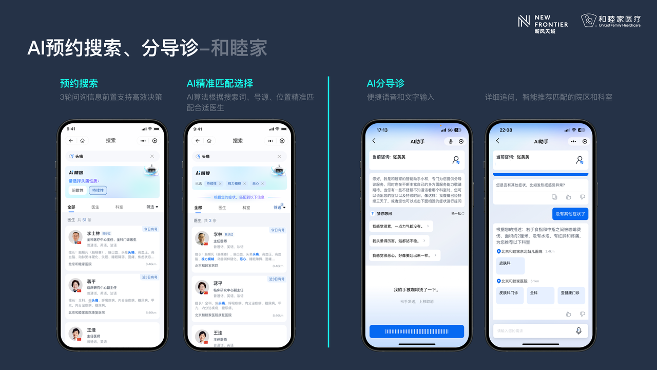 这种整合并非简单的功能叠加,而是通过数据互通与流程优化,实现了服务效率的质变 —— 用户平均就医决策时间缩短 40%,跨场景服务切换率降低 70%,真正让医疗服务从 “被动响应” 转向 “主动匹配”。
