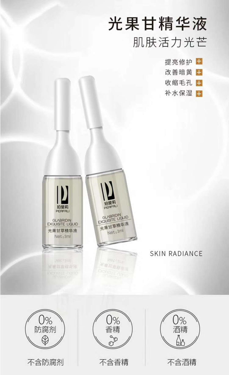 【珀斐莉光果甘草精华液】美白去斑,去黄,补水,滋润肌肤,快速淡化色斑、黑色素、激光术后抗反黑,还你漂亮肌肤,它是一款解决黑色素烦恼的精华液,日常护肤的必备款.