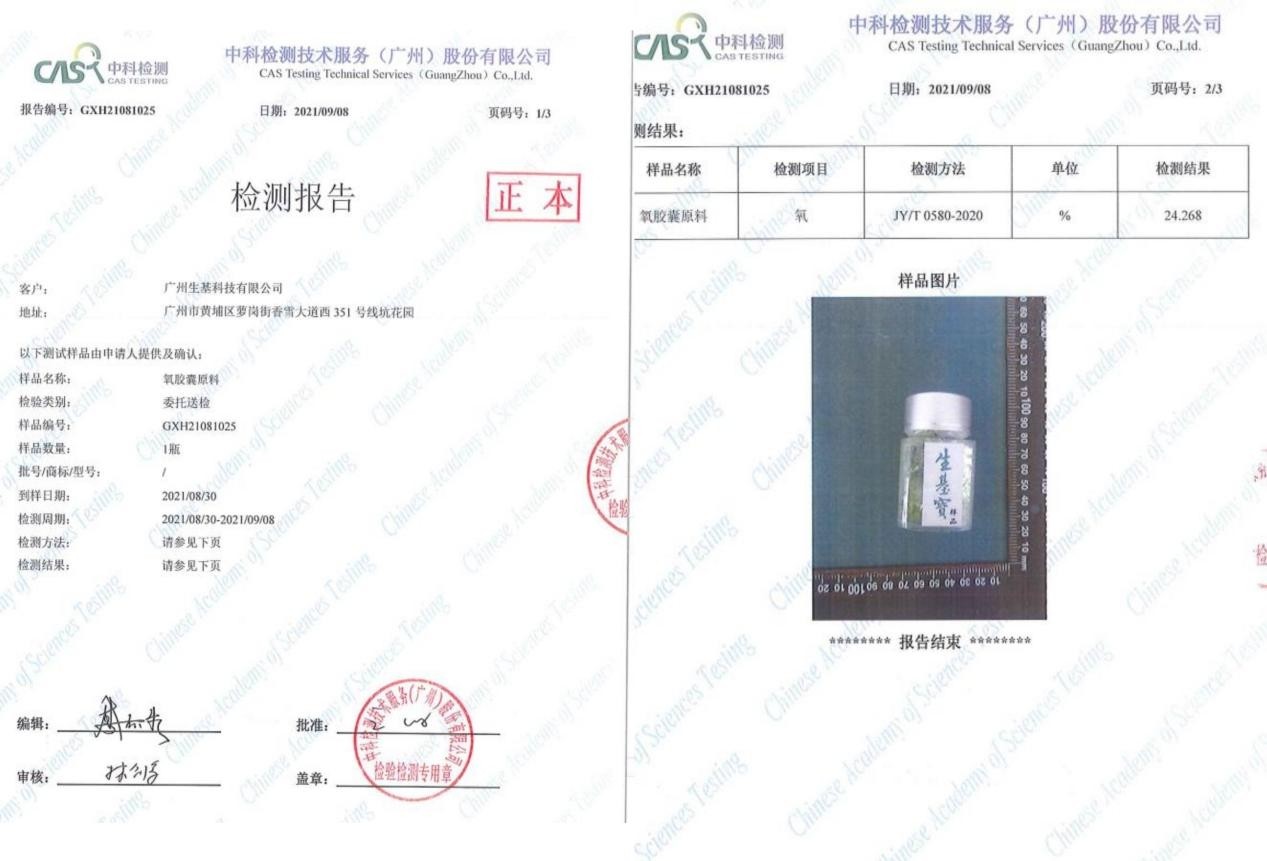 图:负氧离子胶囊(氧豆)中科院权威测试、认证