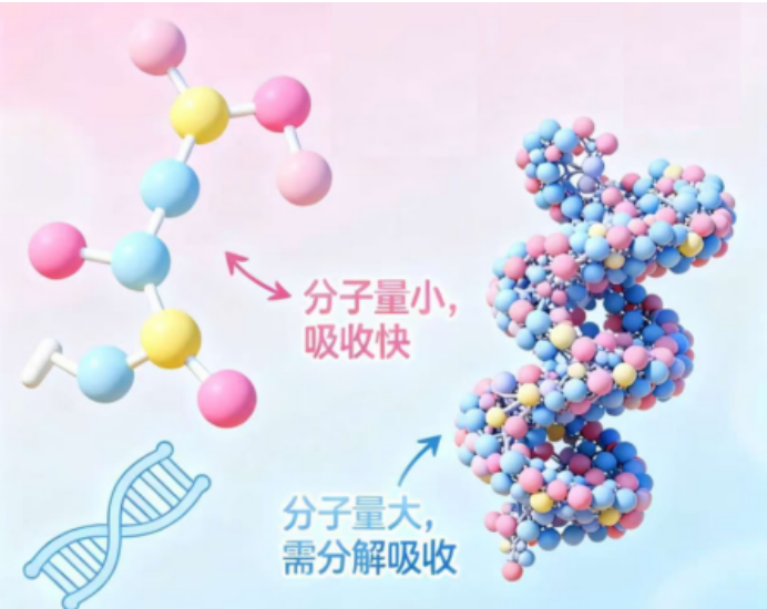 这里要特别说明,Hoodream®脾蛋白肽是“肽”,不是我们平时吃的“蛋白质”。鸡蛋、瘦肉中的蛋白质分子量大,需要肠胃慢慢分解才能被身体吸收;而Hoodream®脾蛋白肽是小分子物质,不用经过复杂的消化过程,能直接被肠道吸收,快速进入血液发挥作用,这也是它比普通高蛋白食物调理更高效的关键。