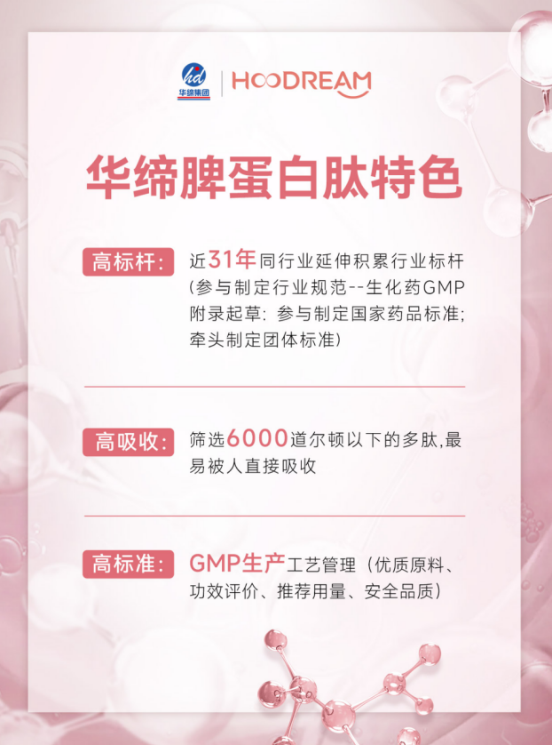 随着人们健康需求的提升,Hoodream®脾蛋白肽正从专业的医学领域,走进更多人的日常生活。未来,随着相关研究的不断深入,它或许还会在皮肤护理、慢性疾病辅助调理等领域,发挥更大的作用。