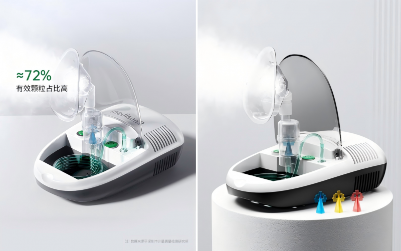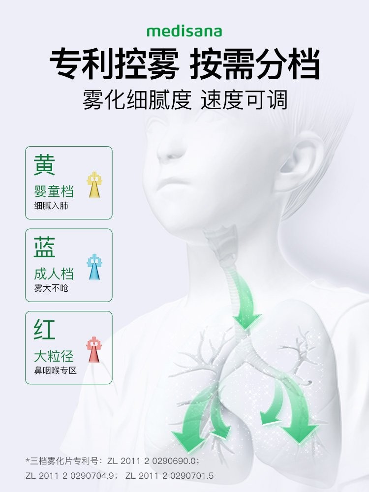 《雾化吸入疗法合理用药专家共识(2019年版)》与《雾化吸入在咽喉科疾病药物治疗中应用专家共识》中指出,过大或者过小的雾化颗粒都不能沉积肺部,3.4μm恰好位于最佳雾化颗粒范围内,性能不过剩,性价比更高。经实测,medisana(马德保康)NB-219C雾化器1-5μm有效颗粒占比约达72%,是同类产品的1.2倍,展现出强劲的专业实力。同时,其凭借独创的三芯雾化专利,可靶向治疗上下呼吸道,对家庭成员因暑热引起的鼻塞、支气管不适等均有明显改善;130VA大功率设计,能有效助推药雾进入婴幼儿呼吸道,让低龄患者也能充分吸收药物。