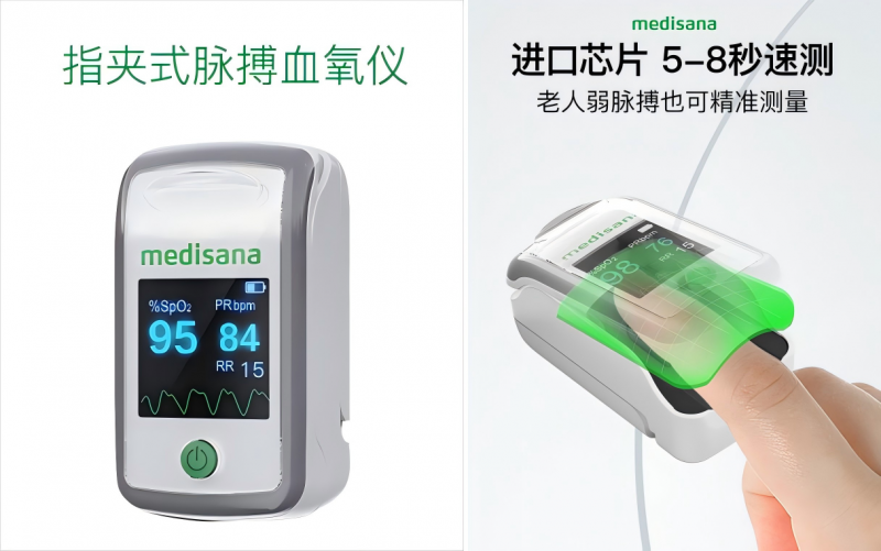 小暑大暑时节,高温与高湿度环境下,人体新陈代谢加快,心肺功能负荷加重,尤其是长时间处于空调房中,空气流通不畅,更易引发缺氧问题,对于本身心肺功能较弱的老年人以及患有慢性呼吸道疾病的人群来说,更存在潜在健康危机,所以检测血氧饱和度成为家庭在盛夏时节重要的健康监测手段。medisana(马德保康)MD300CI216R指夹式脉搏血氧仪,成为老年家庭应对暑热健康风险的必备之选。